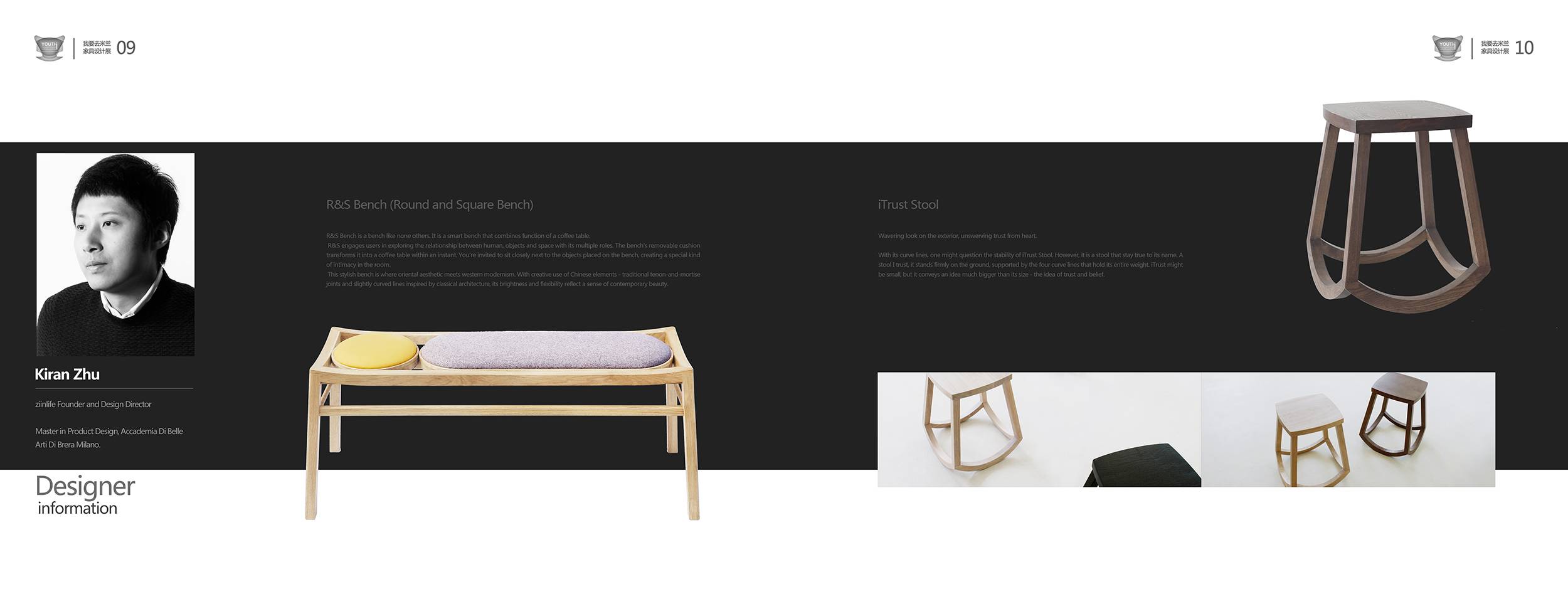 天圆处所长凳兼具东方审美和情趣。线条弯曲而灵动,如保守屋檐,透出东方的神韵。圆形和方形组合而成的几何块面,明快流利的线条和色彩,简练、矫捷的全体形式,又带有西体例的现代感和诙谐感。长凳的设想采用了近乎保守红木家具般精细的工艺。保守的榫卯布局,使得长凳不只精美巧妙,更有强大的承受力,健壮而安定。撑起了六合方圆。