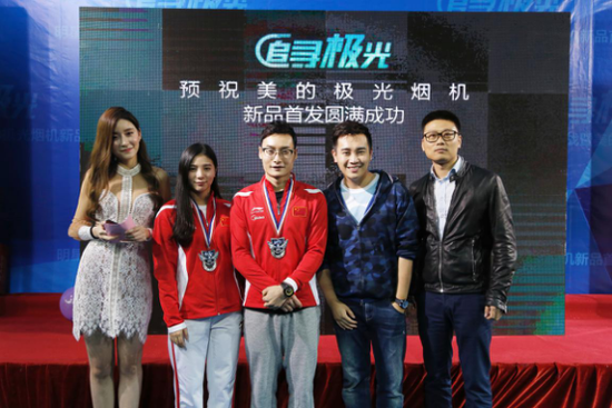 发布会上,美的厨房电器推出了厨房黑科技新品——“净烟机械人”美的极光烟机,吸引了奥运明星CP秦凯、何姿以及85后鲜肉厨神小宝君、女从播Monica倾情帮阵,抢先体验极光烟机“全程零手动、天眼探测、全速畅吸、智能蒸汽洗”等强大功能。