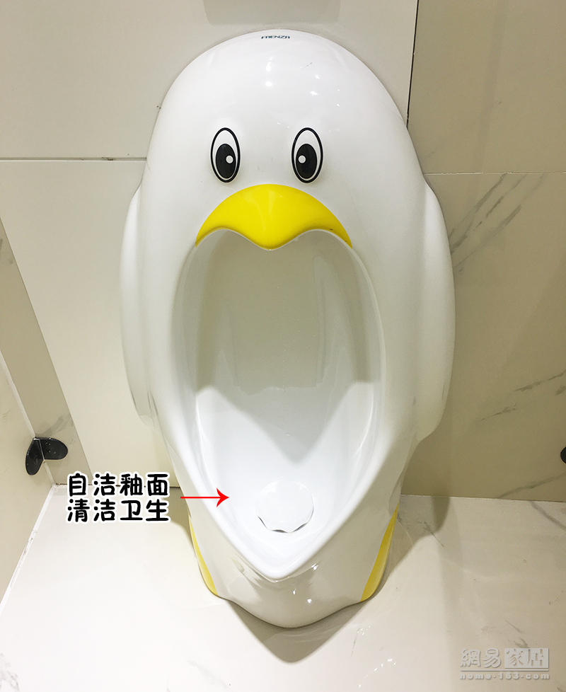 除了龙猫外,企鹅也是良多小伴侣们十分喜爱的动物之一,因而,法恩莎FN66101就锐意选用了企鹅做为便斗制型,看起来不只可爱十脚,还有点让人忍俊不由。小便斗的高度设想,可满脚绝大部门3-8岁春秋儿童利用。