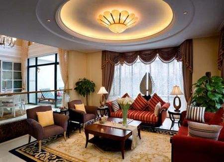 四、要根据层高确定能否吊顶以及吊顶的形式:室第的层高很是环节。若是层高很低,以至低于2.5米,那么就不宜大面积吊顶,但能够正在局部小范畴吊顶,如正在衡宇四周吊一圈十几厘米宽、10—18厘米高的二级顶,内藏向上映照的灯光,而两头部位连结原高,可用淡蓝色涂料刷顶,如许会使顶面显得向天空一样高远,还能丰硕顶面条理。或正在房间的某个荫蔽部门进行局部吊顶,都能够取得同样的结果。对于层高很高的房间,能够自正在的选择吊顶体例及制型,能够是弧形、圆形、方形、异型顶,也能够分二级以至少级吊顶制型,并能够采用大面积吊顶以降低层高。