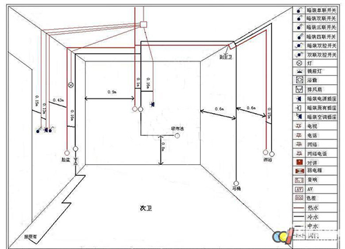 水布线时尽量避免水管从地上过,由于日后地面水管更容易受压。此外,水布线有冷水管和热水管之分,正在排布时留意遵照左热左冷的纪律。埋正在墙内的冷水管至多要有1cm的层,而热水管的层要比冷水管厚0.5厘米,正在开槽时要留意开槽的深度。