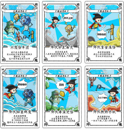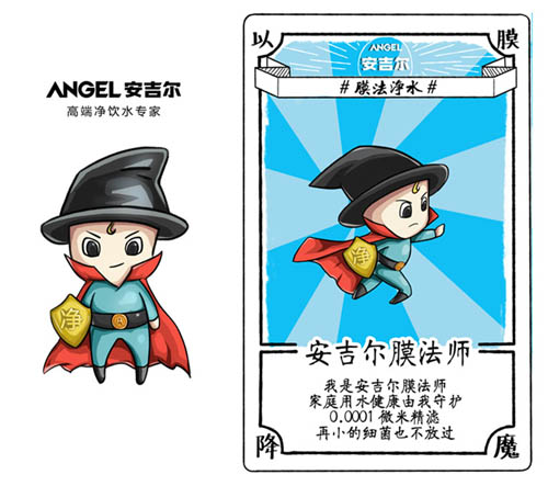 正在膜的设想上创意独到:盾牌上插手“净”字,曲不雅地凸起品牌全年传布从线“膜法清水”的概念,推进“膜法”概念的传布;大氅的颜色采器具有感的红色;嘴巴采用简单的线条,简化面部元素,使面部更易构成符号化特征;的头身比,额头一撮婴儿胎发,凸显膜可爱的特质,让人发生取“婴儿”的挂靠联想;正在膜腰带扣子上设想“A”字母,做为品牌元素正在视觉核心呈现,更有回忆点。同时,为了抽象表达当下消费者面对的饮用水问题,设想出一系列《以膜降魔图鉴》Gif漫画海报,并为了凸显“膜”的“超能力”,起首将自来水中的5大无害物质(余氯、沉金属、细菌、毒藻、铁锈)抽象化,变成漫画中的水魔怪脚色(余氯鬼魂、沉金属怪、细菌、毒藻老怪、铁锈赤妖);而安吉尔膜以豪杰抽象呈现,用兵器(盾牌)和分歧的收集热度用语,分歧类型的水魔怪。