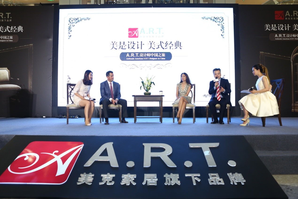 2017年6月21日,“美是设想,美式典范”A.R.T.设想师中国之旅坐,正在野阳区东四环红星美凯龙家居馆举行。这是一场中国设想师取A.R.T.美国设想师的大咖对话,是对美式新家居从义和糊口体例的再注释。A.R.T.产物和营销高级副总Adam Tilley先生、美克家居告白营销总监刘春杰先生、A.R.T.渠道成长部渠道成长总监高巍先生,国内出名设想师陈暄密斯和数十位设想师代表一了2017年A.R.T.设想师中国之旅的全新启幕。