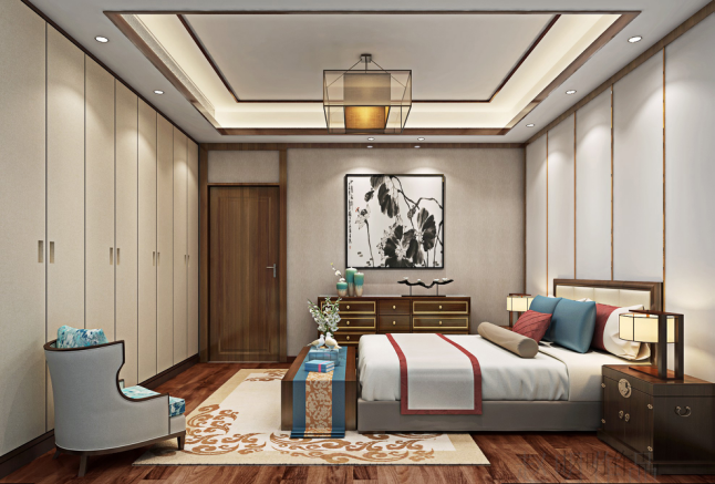 空间色调以温暖的米为基调,深色木线条勾边。设想师赵明充实考虑到白叟的脾气取爱好,选用文雅古典的软拆。墙上的水墨挂画寥寥数笔,神韵兼具,古味十脚。棕色的木质柜取地板相配,低调沉稳,得体风雅。水绿色取乳白色拼接的花瓶清爽十脚,是整个空间的亮点之一。