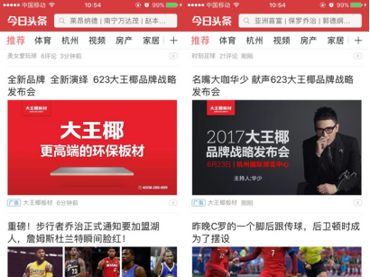 为了可以或许敏捷大范畴内传布品牌,提高品牌出名度,大王椰进驻品牌宣传高地,正在全国范畴的小区通知栏、电梯内、公交车、天桥、高炮等户外范畴内鼎力投放告白。全面提高消费者对大王椰板材的认知度,以高端的品牌抽象,凸显大王椰品牌高端定位,以强烈的视觉冲击结果,让人过目难忘。同时,添加取消费者及意向客户的接触点,极大推进终端发卖渠道良性成长。