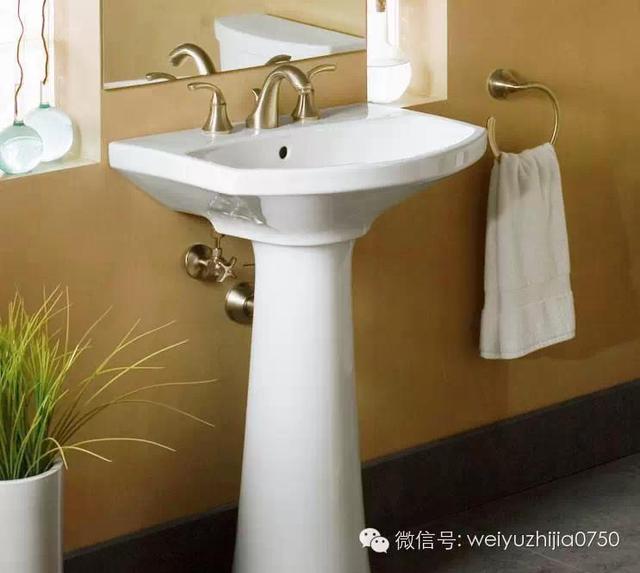 假如卫浴间面积较小,那不妨考虑下立柱盆。立柱盆由台盆取立柱构成,安拆简单,正在台盆下面增设一根立柱,柱盆便构成了。立柱能够起到支持、固定台盆以及躲藏排水组件的,因此具有必然美妙性,并且其占用空间很少,所以很是适合小户型单元利用。其布局紧凑,容易洁净,但缺乏需要的储物空间,会让卫浴间看上去显得有一点芜杂。