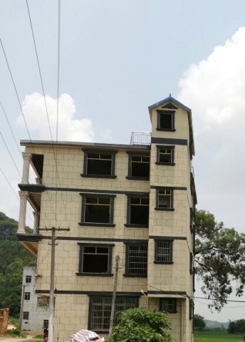 新房座西向东一楼客堂超大,并且是挑高6·3米的,东南方没有搭木板的就是客堂,请的木匠师傅是乡里功夫最好的(师傅本人说的),比起城里的师傅就差远了,垂曲和程度都误差比力大达不到要求,后来拆修要修补良多,多花钱。