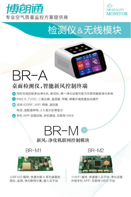 博朗通研发的BR-K、BR-A系列器都内置了高精度的颗粒物传感器,进口VOCs传感器、CO2传感器、专业级的温湿度传感器等,此中颗粒物传感器以京津冀地域污染物为次要标定污染参考物,结合景象形象局合做开辟的适合中国大中型城市利用的平易近用激光颗粒物算法,颗粒物检测值取专业设备对比平均相关系数高达94%以上。
