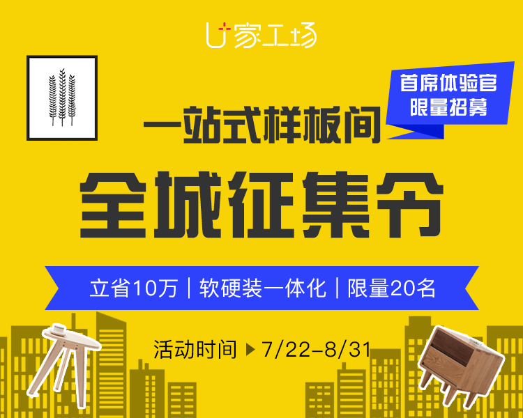 U家工厂于7月22日正式上线“一坐式样板间”全城搜集,限量招募首席体验官!成为首席体验官即可享受U家工厂供给的三位一体(硬拆、柜体、色彩)专属设想团队、特级监理及金牌施工团队的定向办事。硬拆类从材免费升级为【轻奢系列产物】,还能享受全体软拆搭配设想及摆场办事补助,实正的软硬拆一体化,轻松为您立省10万。