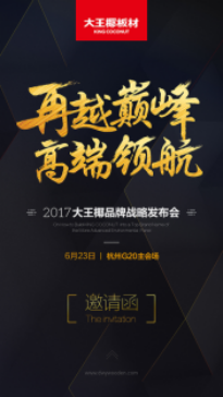 17年,成长到今天,曾经成为中国板材行业的俊彦,而且一曲正在鞭策行业的取成长。大王椰永不止步,品牌成长到现今阶段,我们因势而动,正在2017品牌计谋年高举高打,适应市场变化及消费升级,全面提拔本身品牌扶植,新定位、新、新抽象、新营销,全新蝶变,引领板材行业新时代。