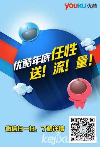 2014年12月15日-21日,联通、电信及北京移动用户,登录优酷App在线观看任意视频累计30分钟,即可领取100M流量(北京移动150M),先到先得。用户可关注优酷官方微信公众号(微信号:youku),在“大家都在玩”中进入“看视频,送流量”活动页面,查看当日累计观看时长,并领取当日流量。同一优酷用户、手机号码每日最多领取一次。扫描二维码,了解更多活动详情。