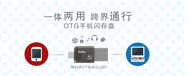 随着智能手机、平板电脑的广泛普及,加之高清视频、高分辨率相片的海量涌现,使得移动设备的存储空间被占用的越来越快,导致用户对移动设备本身存储空间的需求剧增。但是大容量的移动设备价格高昂,普通的闪存盘又无法匹配移动设备的接口。面对用户对移动存储产品“通用性”与“高性价比”的需求,朗科倾力打造了一款体积小巧并搭载USB3.0接口的OTG手机闪存盘——U301,它将USB与Micro USB接口整合在一起,以更便捷的方式实现智能手机、平板电脑与闪存盘的互联,完成移动设备间的数据传送,并以更低的成本让用户获得移动设备存储容量的扩展,真正实现存储无忧。