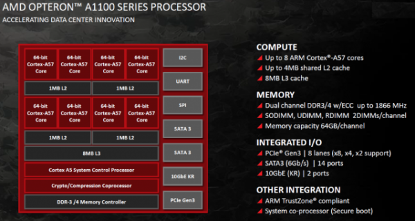 AMD希望利用Opteron A1100来挑战英特尔在数据中心服务器处理器市场的主导地位。调研公司Gartner数据显示,当前英特尔每年来自该市场的营收约为140亿美元。对于AMD而言,这款处理器也是AMD走向个性化的开始。