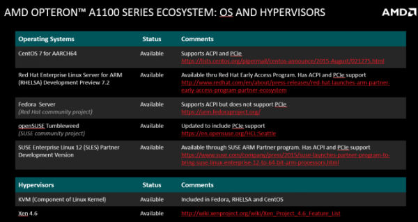 今日,Opteron A1100系列首发三款型号,旗舰级Opteron A1170主要针对高性能需求;Opteron A1150面向存储和网络应用,高性价比;而Opteron A1120面向软件开发和低性能应用。