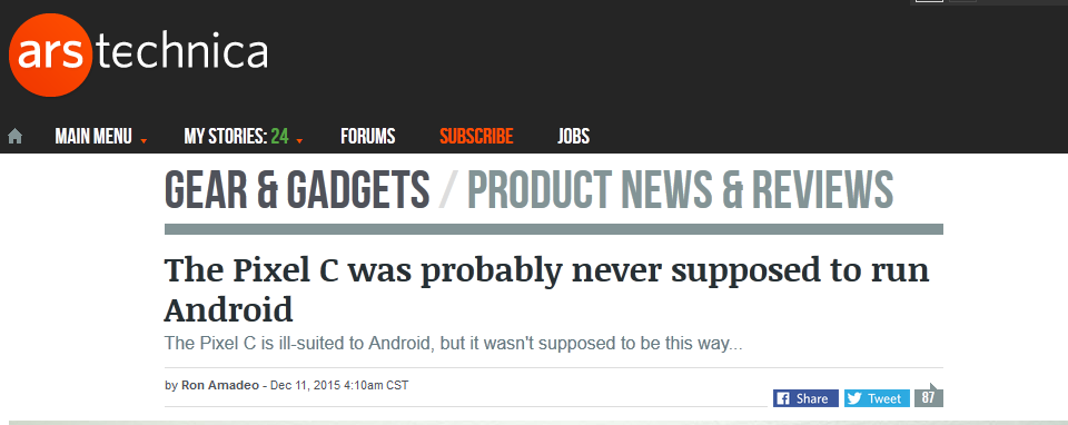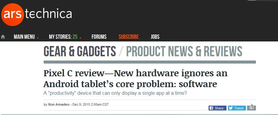 谷歌旗下第一款有生产力的平板 Pixel C本周在美国正式开卖,多家外媒和科技博主也在 Pixel C 上市前拿到了产品并进行了体验,遗憾的是我们并没有从这些文字中读出令人兴奋的情绪,从反馈的结果看:这是一款失望大于惊喜的产品。