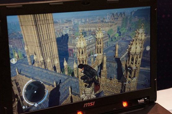 HardwareZone表示,如上图所示,微星GT72 Dominator Pro Tobii在笔记本显示屏下方集成有独立的Tobii EyeX眼动仪。但是,Tobii EyeX眼动仪需要游戏的支持才能充分发挥功能,令人欣喜的是,游戏社区已经意识到了眼动仪的优势,将适时推出兼容游戏。在微星GT72 Dominator Pro Tobii上展示的游戏是育碧即将发布的《刺客信条:辛迪加》(Assassin's Creed: Syndicate),这款游戏支持眼动仪技术。