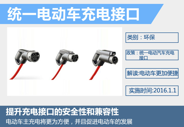 中国汽车市场虽然经历了2015年的整体增速放缓,但受政策利好等因素,新能源汽车市场表现可圈可点,汽车行业政策很大程度上决定了市场走向。来到了2016年,中国汽车行业有哪些新政策的实施,会对消费者的有车(或是即将进入有车)生活产生影响呢?网通社从国家工信部品牌策划,交通运输部等多部委了解到:2016年有6个关键政策实施,新政将在统一充电接口、燃油限值、售后维修等方面,更大程度上维护消费者的利益。