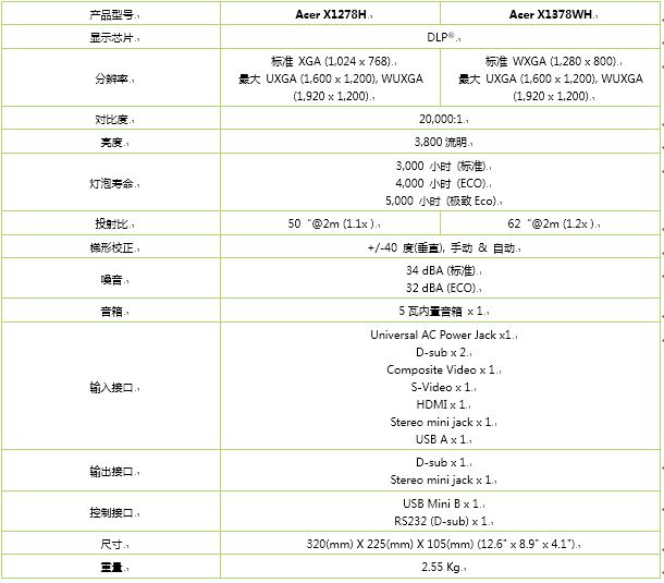 作为全球领先的投影机品牌,Acer宏碁在投影机市场有着非常深厚的积淀,X1278H高清投影机的实用定位完美迎合主流商用用户的需求,活动。3800的流明更是领跑行业,绝对是值得用户期待的一款超值实用投影机!