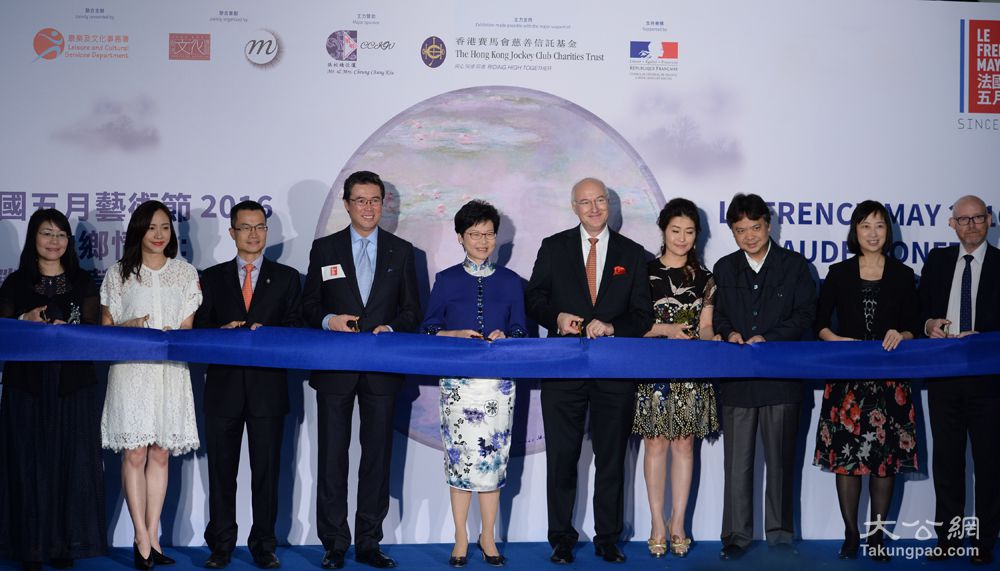 香港文化博物馆他乡情韵—克劳德.莫奈作品展昨日开幕,由香港特区政府政务司司长林郑月娥、法国驻港澳总领事灡川、法国五月艺术节董事局主席阮伟文和康乐及文化事务署署长李美嫦等任主礼嘉宾。