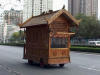 整个“房车”被罩在一辆农用车之上,前端为驾驶室,操控方向,变速加油直接在“木屋”中进行。车中部被分为上下两层,顶层用于储藏杂物,下层用于铺床休息。据“房车”的主人称,他姓袁,是中牟的瓜农,祖传四代木工手艺,1993年他还曾参加过北京故宫的维修。