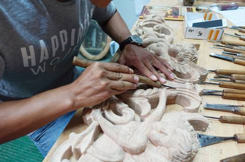 木斯特家居产品一直以造型独特和栩栩如生闻名业内,这与其与生俱来的东阳木雕基因密不可分。当初开设木雕工厂的时候,胡董就聘请了许多东阳师傅作骨干,而他自己也招徒授艺。在1998年,胡董招收了第一批徒弟共23人。这一批徒弟到现在仍有一半留在木斯特工作,有的己成为省级工艺美术大师。木斯特的家居精品,就是由胡董带领东阳师傅们一刀一刀雕刻出来的。