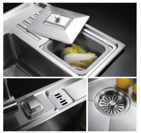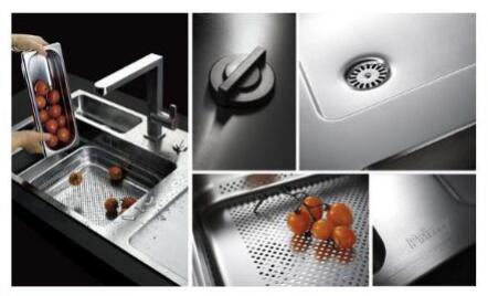 3。普乐美水槽贴心实用:普乐美不锈钢功能水槽均配有菜板、沥水篮、沥水板、线篮、刀具盒、刀具等配件,并且其搁放沥水板和菜板的凹槽轨设计成双层结构,这样菜板和沥水板便可以左右滑动,甚至能够重叠,充分将洗切一体化,有效节省空间。