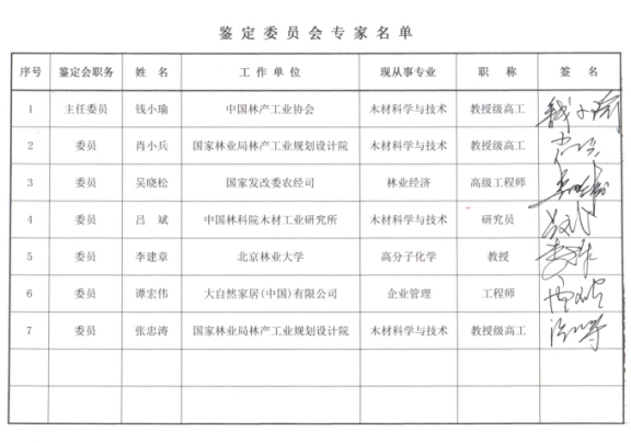 科技鉴定:中国林科院林产工业协会专家咨询委员会