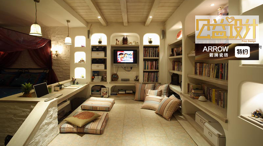 公益设计总第270期:92平客厅弧形组合极吸睛地台书屋变身惊喜不断