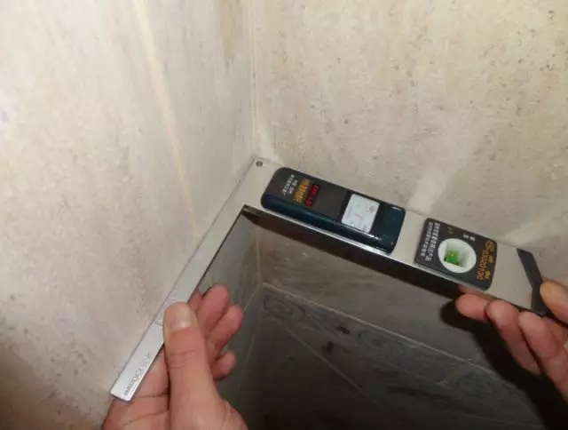 用长尺(或者带有水平的专用直尺),检查墙壁地面是否平整,同时观察是否有划痕裂纹。