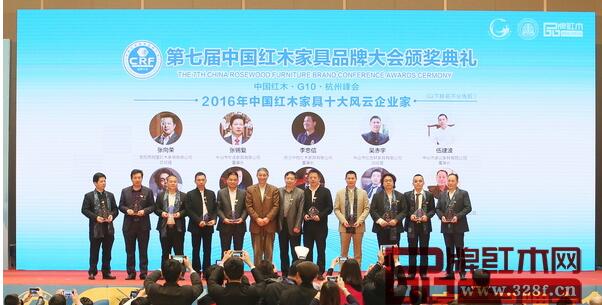 御乾堂(右三)荣获“2016年中国红木家具十大受欢迎品牌”