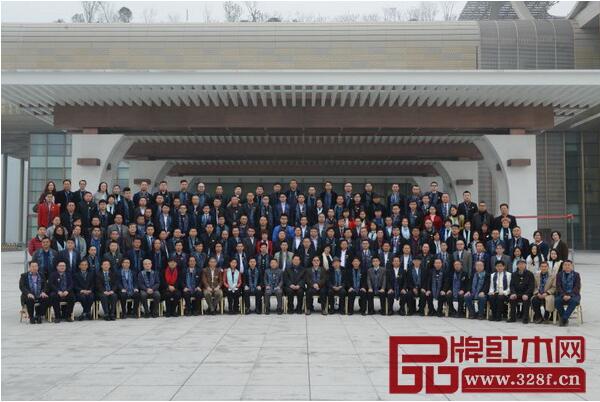 第七届中国红木家具品牌大会与会嘉宾在G20峰会会场前合影