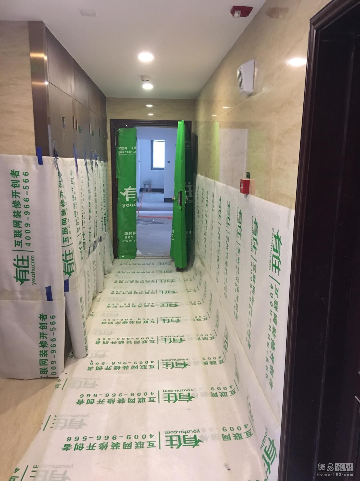 入户门到电梯处,以及走廊电梯离地1米的高度都要用地膜保护,入户门要用门套,86盒注意遮盖,地漏堵住,以免在施工的过程中水泥沉积造成下水堵住的现象。