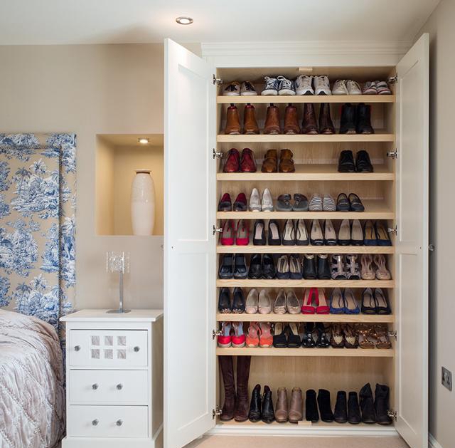 鞋柜的设计,真是大大的利用了墙体的空间,平时常穿的鞋子放在下面几层,反季节的、一时穿不到的鞋子放置在顶层,这样的装修细节就避免了鞋柜根本装不下一家人鞋子的问题。而且,根本没有用到房子的空间啊!