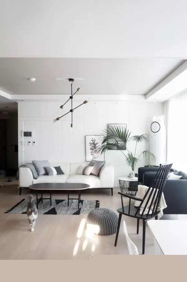 我们可以看整体布置非常简单,基础干干净净。选了几件干净利索的家具,搭配软装饰品/绿植,这样一个舒适的空间就大功告成啦!