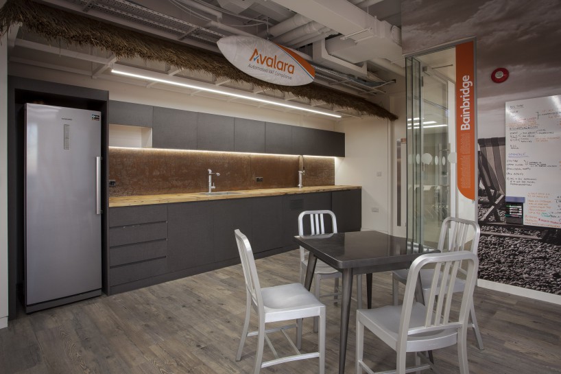 这一由Aedas室内设想团队设想的无前台的办公空间,是快速成长的美国科技公司Avalara正在英国的首个办公室。因为大楼首层设有需所有访客同一登记的欢迎前台,办公室内无需增设前台。前厅区域因而设置为欢迎处、休憩区以及海岛风情吧。