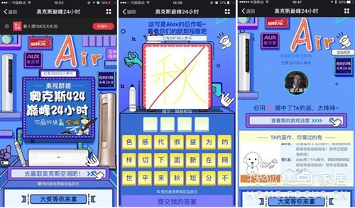 除了推出多沉优惠,奥克斯结合京东微信购物推出“你猜我画,赢免费空调”H5小逛戏,以简单的操做和趣味的形式,构成优良的用户互动以及二次分享。此中融入产物及促销好处点,从而激发潜正在用户消费推进发卖。逛戏上线仅1小时就获得了数千人的参取,这种以互动传布带动发卖的模式,将为线上促销注入新颖的血液。