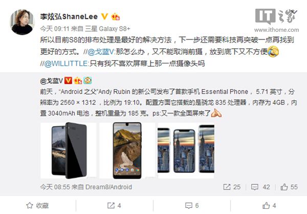 三星中国设想研究所所长李炫弘ShaneLee正在微博上表达了本人的见地,他认为“目前S8的排布处置是最好的处理方式,下一步还需要科技再冲破一点再找到更好的体例。”