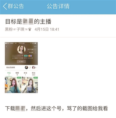 5月11日下战书,一位群正在QQ群中发布动静说,晚上8点会有一次“单”,要求大师用手机下载某曲播软件,然后去黑从播。至于具体如何黑从播,他引见:“人家叫你怎样喷你就怎样喷”。