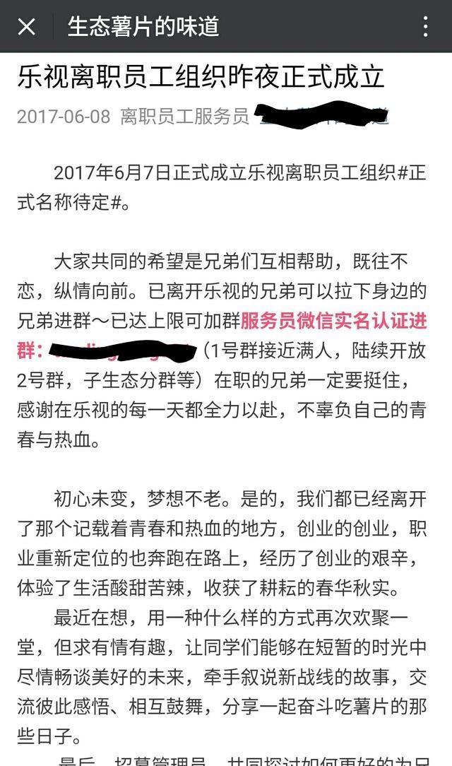 2017年6月7日正式成立乐视离人员工组织#正式名称待定#。