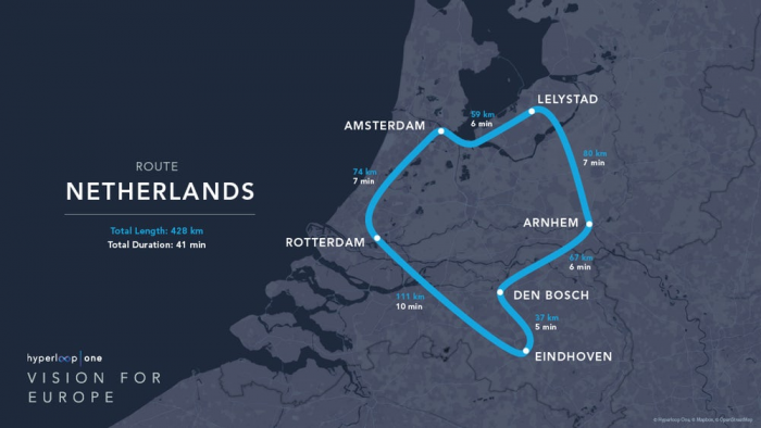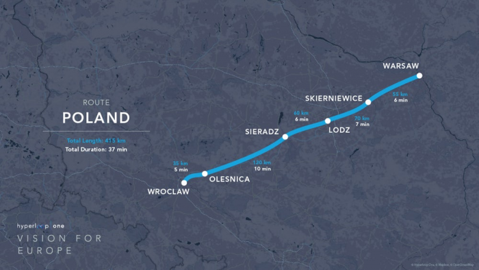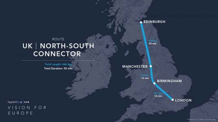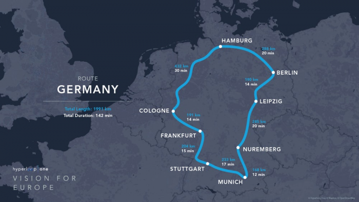 Hyperloop One正在欧洲愿景峰会上发布了这9条线公里不等。