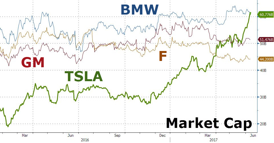 两个月内,从美国两大车企到豪车巨头,特斯拉实现了市值三连超。