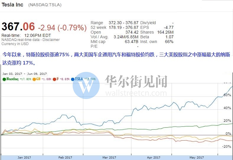 截至发稿,特斯拉股价回吐早盘涨幅,跌约0.8%。本年以来,特斯拉股价涨逾75%,两大美国车企通用汽车和福特股价均下跌,三大美股股指之中涨幅最大的纳斯达克也只涨约17%。