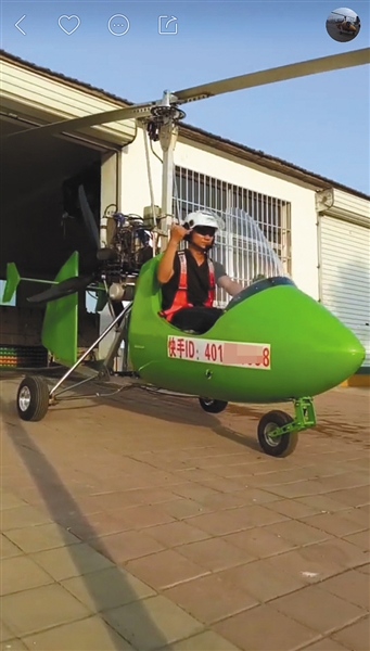 这曲直播平台快手上,一个名为“少将”的用户发布的内容。进入他的小我页面,能够看到327个短视频,大部门取一种名为“旋翼机”的飞翔器相关。这种飞翔器外形上近似于曲升机,但全体尺寸要小得多。记者留意到,“少将”展现的旋翼机,包含螺旋桨、驾驶室、尾翼、滑轮等,策动机裸露正在外,驾驶舱仅有前挡风玻璃,并未密封。