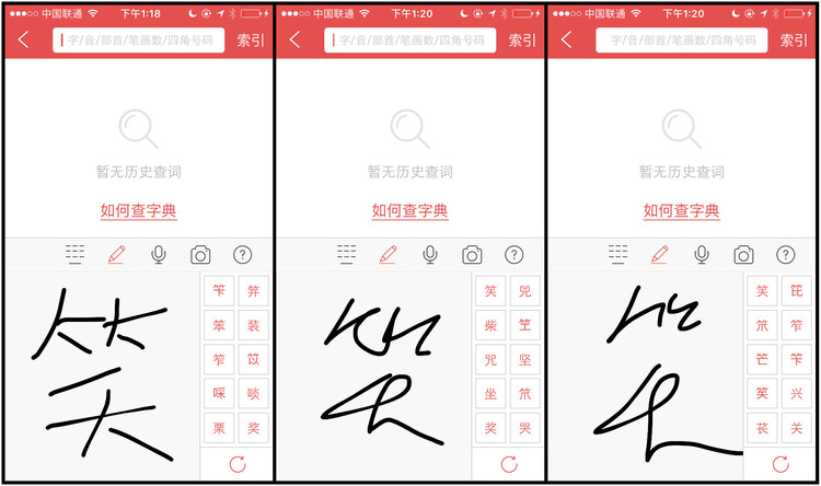 第二个是手写。习惯了拼音输入的我来感触感染了一下手写识别,有点思疑本人的中文书写程度:正派写的识别不出,胡乱画的精确识别。