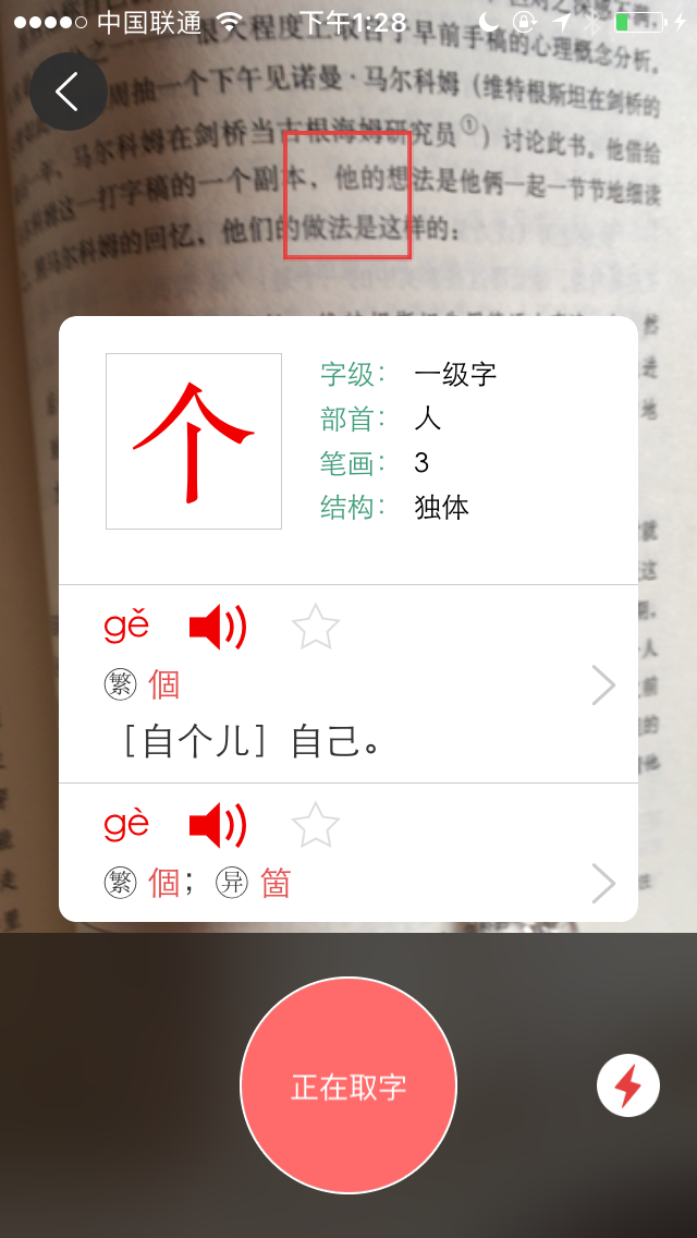 这些,能够算是电子字典的根本内容。这个新华字典APP的特殊弄法,是跟纸质版《新华字典》的互动。