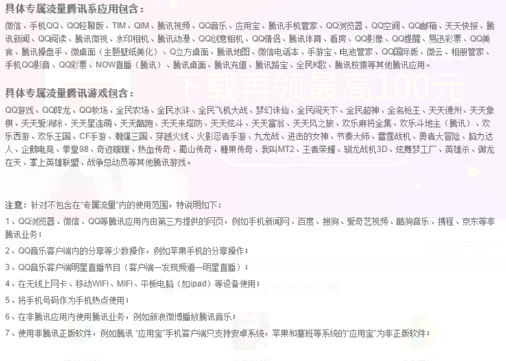 当然还有跟腾讯合做的大王卡。这可能是迄今为止最为恐怖的一张卡,由于腾讯系的使用(包罗逛戏)数量有近100个,微信、手Q、视频、音乐、东西、浏览器、旧事客户端、相机、收集德律风和王者荣耀一应俱全——是的,它们全数免流量。
