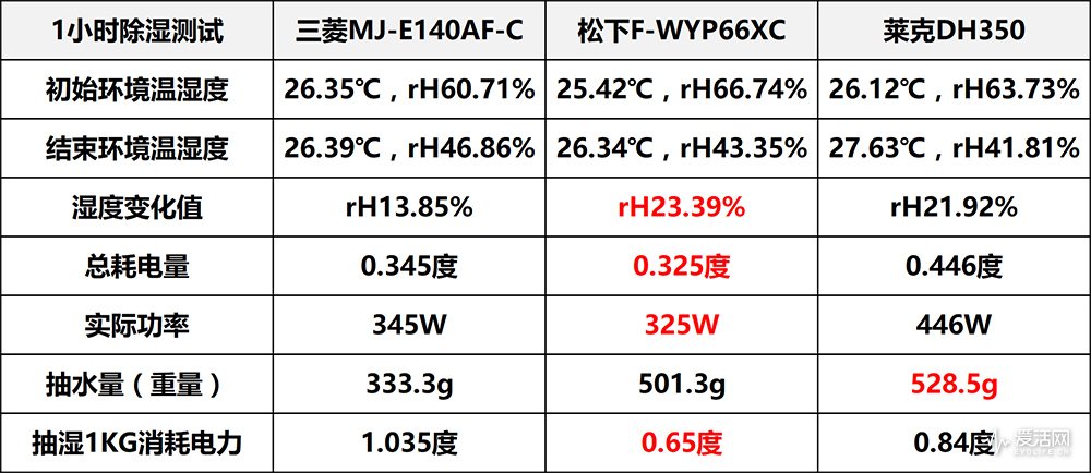 正如厂商标识表记标帜的日除湿量一样,35L的莱克DH350除湿结果是最好的,正在一小时共去除528.5g水,松下F-WYP66XC以27.2g只差紧随其后。不外若考虑到效率取舒服性,莱克DH350成就并不抱负,房间升温达到1.51℃,抽湿1KG水分更需耗损0.84度电。莱克DH350具有最好的除湿结果,松下F-WYP66XC则是除湿效率最高。