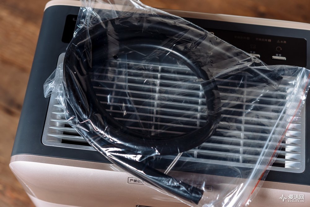 左:莱克DH350的复合HEPA滤网/蓝色、活性炭过滤网/黑色;左:莱克DH350三款除湿机中独一原厂附赠水管的产物,能帮用户省却不少麻烦,终究不是每一个用户都领会水管规格。
