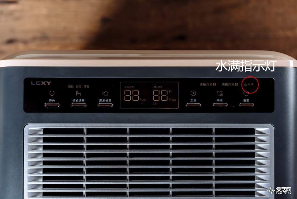不知莱克DH350能否是为了陪衬其复古制型,其交互界面是由多个物理按键取一个LED屏幕构成,可选择的功能、显示的数据都不多。更让人无解的是,水箱是放正在机械后背,若是接近墙面放置除湿机,将会难以透过水箱的水位镜不雅测能否水满,只能靠机械顶部藐小的“水满”灯来判断。比拟之下,松下全触摸按键以及带背光的液晶屏易用性、美妙度优良不少。