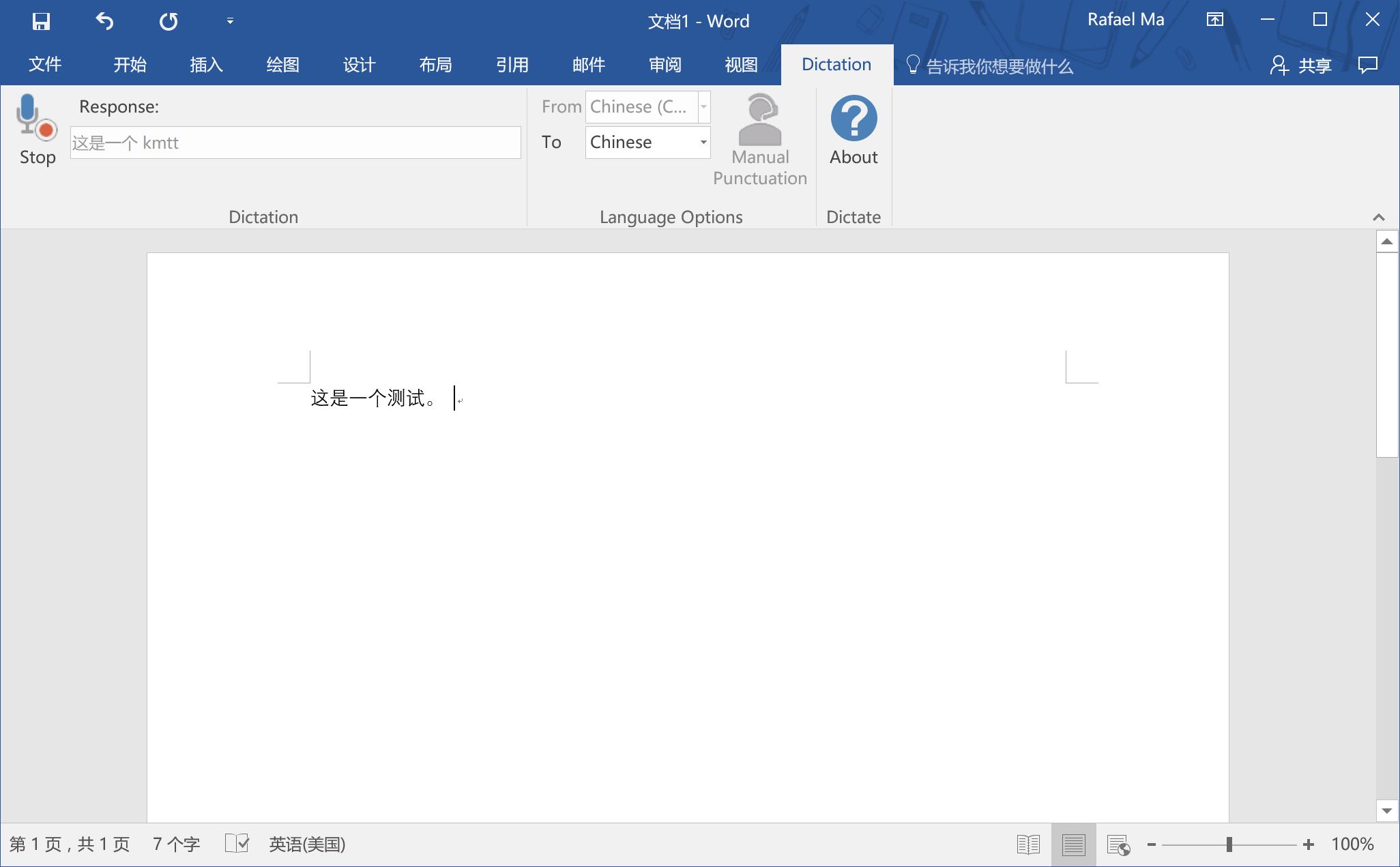 但微软现正在给 Office 推出了一个听写插件 Dictate,精确率高,并且支撑及时翻译,玩起来还挺不错。